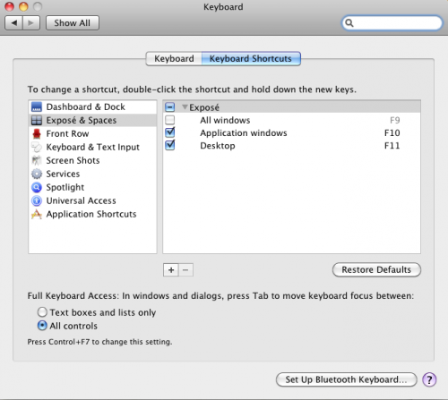 On Mac, there is a second way to access the Print Button by pressing Return. To do this, you use the Tab key to navigate to the Print Button before you press return. To use this method, you’ll first need to go into the Keyboard Pane of System Preferences. Select the Keyboard Shortcuts tab. Under “Full Keyboard Access: In windows and dialogs, press Tab to move keyboard focus between”, then select the radio button that says “All Controls” :